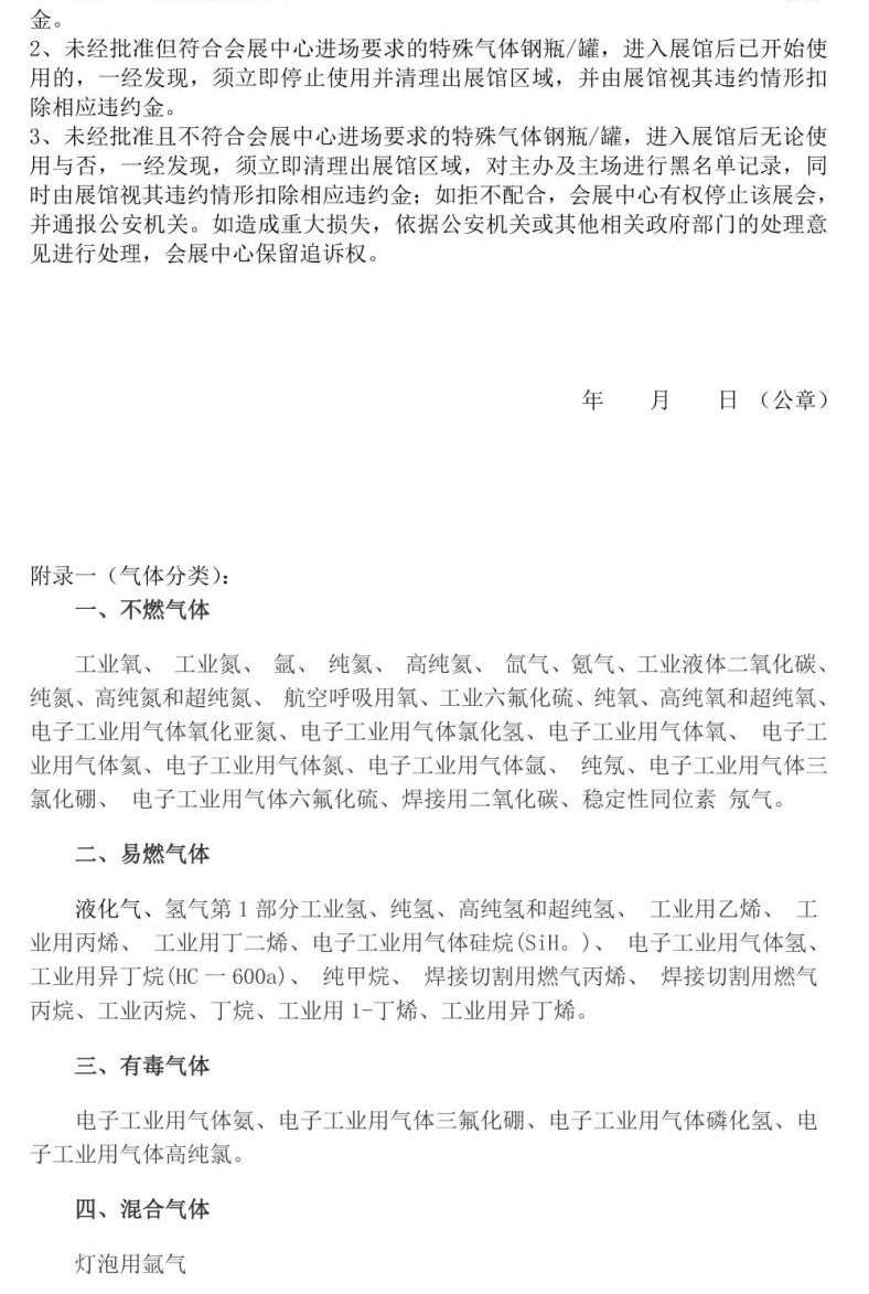 郑州国际会展中心关于展会期间特殊气体使用的要求及流程
