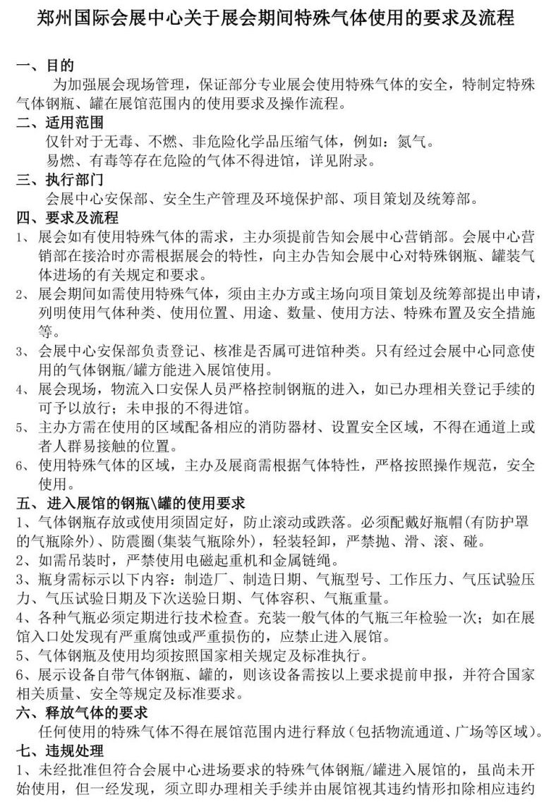 《郑州国际会展中心关于展会期间特殊气体使用的要求及流程》文档下载