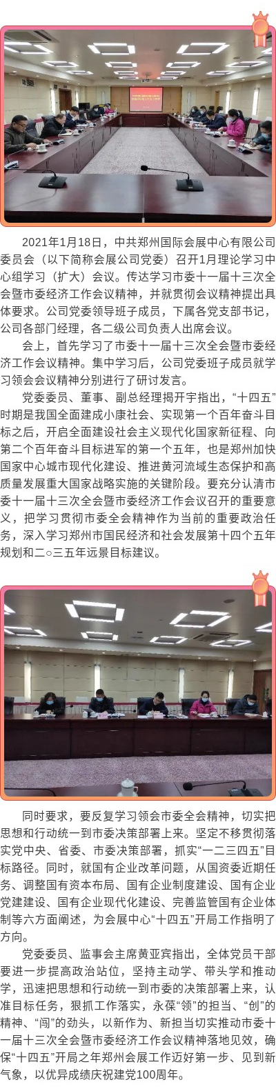 中共郑州国际会展中心有限公司委员会 召开理论学习中心组扩大会议传达学习市委 十一届十三次全会暨市委经济工作会议精神